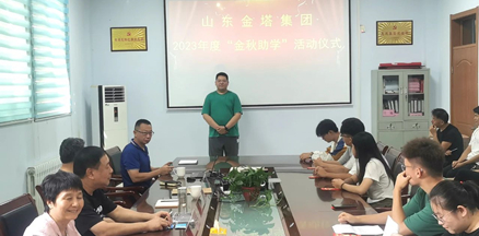 雨潤心田寄真情,金秋助學再行動。 伴著和風順雨,8月19日上午,山東金塔集團舉行2024年度“金秋助學”儀式,對27名金榜題名的金塔學子發放助學獎勵。黨委副書記、副總經理王偉,工會主席、副總經理劉英云,監事會主席侯培亮,受助大學生及家長參加儀式。 “金秋助學”活動儀式上,王偉同志代表集團黨委、董事會對莘莘學子表達了祝賀、祝福、祝愿之情,希望同學們站在新起點、立下大志向,勤學善學,自律自強,常懷感恩之心,不負青春韶華,早日成為棟梁之材,報答父母,回饋社會,報效祖國。 收獲在金秋,感恩在心中。金秋助學儀式上,受助學生代表發表了情真意切的感言。他們用發自內心的切身感悟表達了對父母養育之恩,對師長教誨之情,對金塔重教之舉的深深感激。大家一致表示,將時刻銘記金塔大家庭的關心關愛,感恩奮進,潛心學習,不負青春韶華,立志成長成才,回報深情厚愛。 風雨十七載,助學顯情懷。金塔“金秋助學”工程自2008年實施以來,十七年間共累計資助336名金塔學子進入高等學府深造,助力成長成才。尊重知識、尊重人才成為金塔企業文化的鮮明特質,助推金塔在高質量發展中行穩致遠。